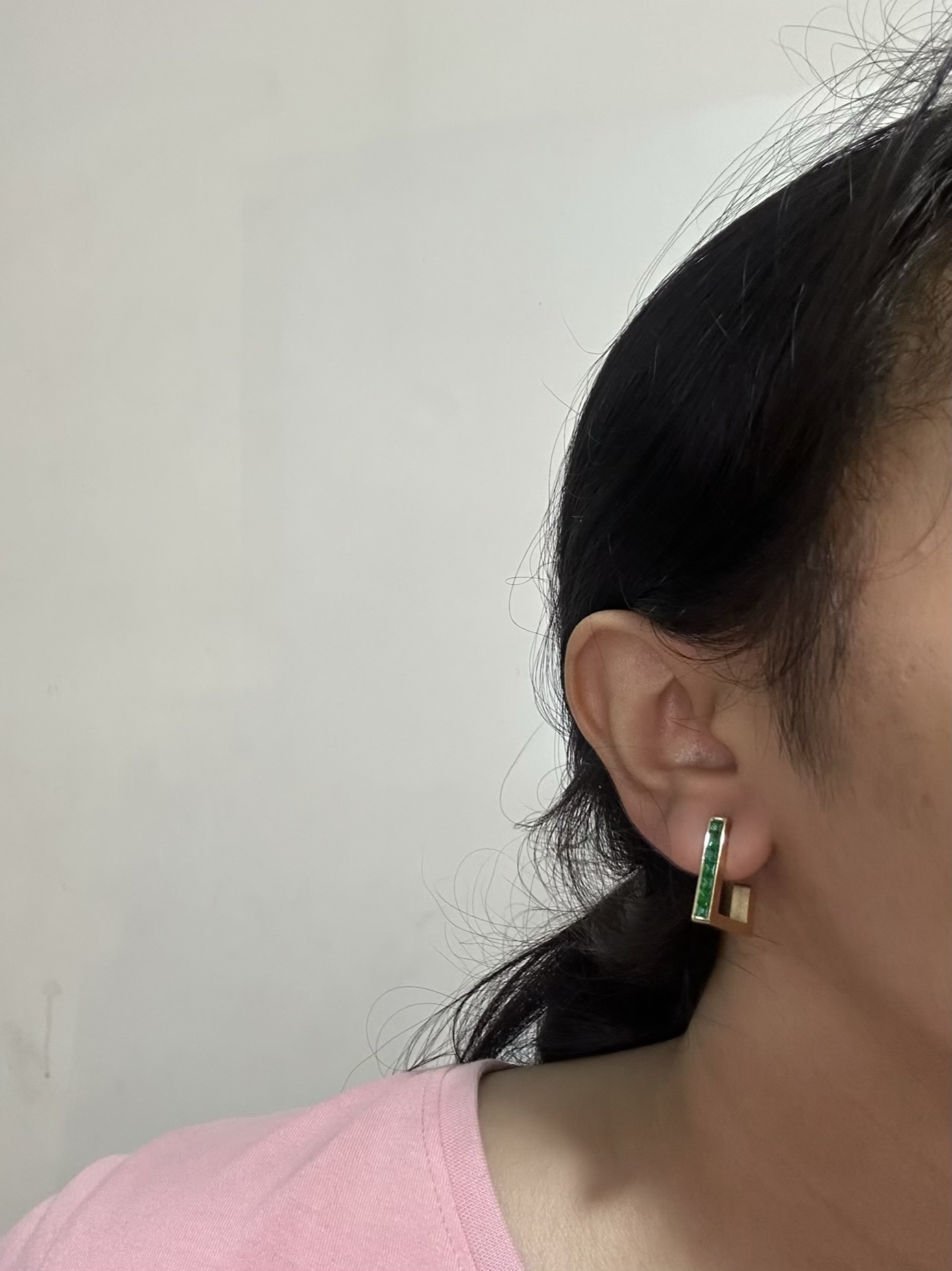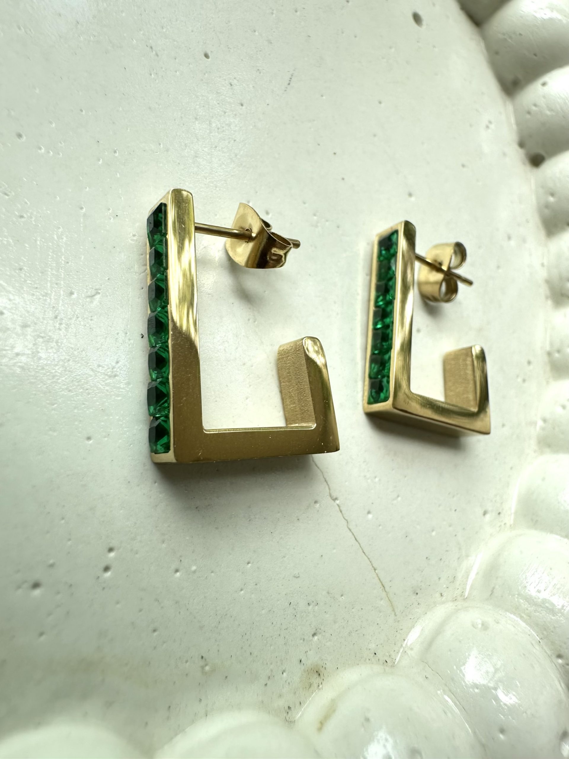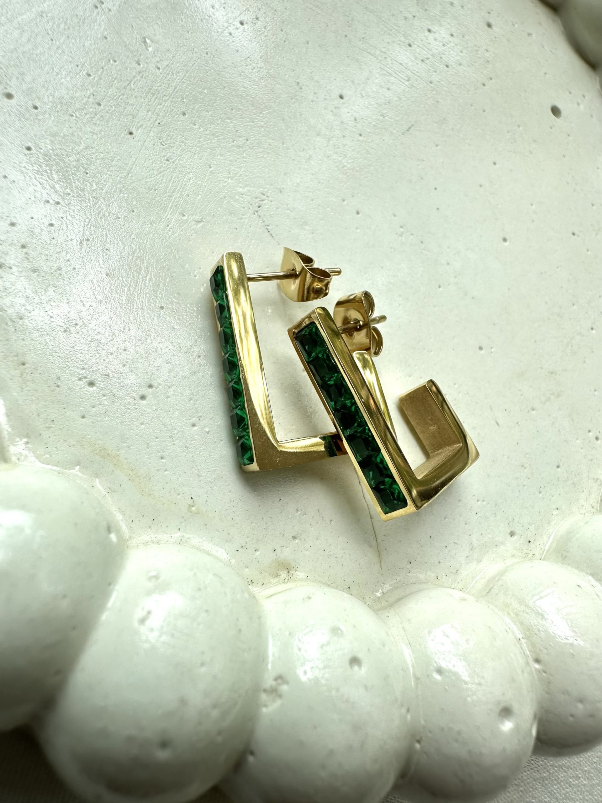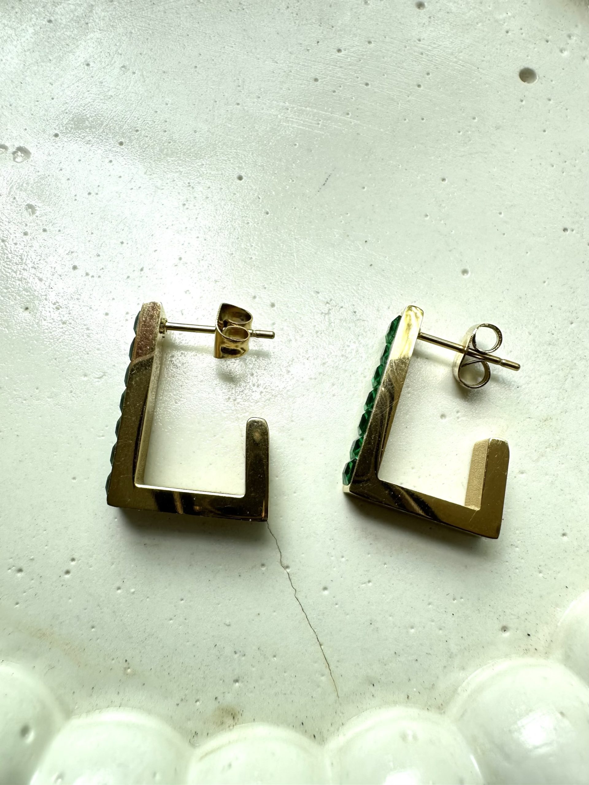 Green Stoned Rectangle Hoops Earrings