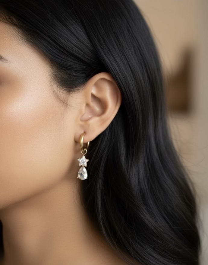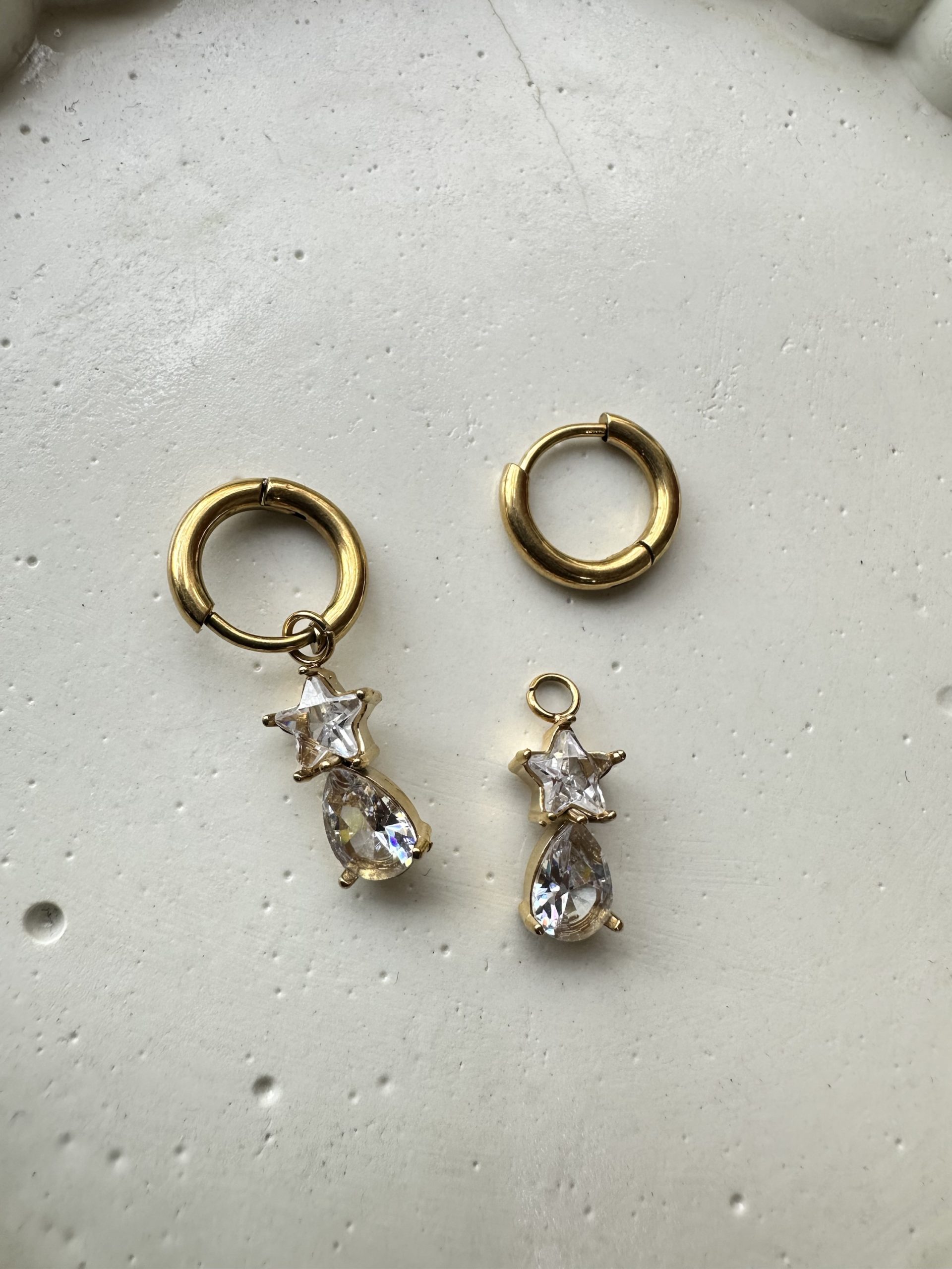 Star Drop Crystal Huggies Earrings
