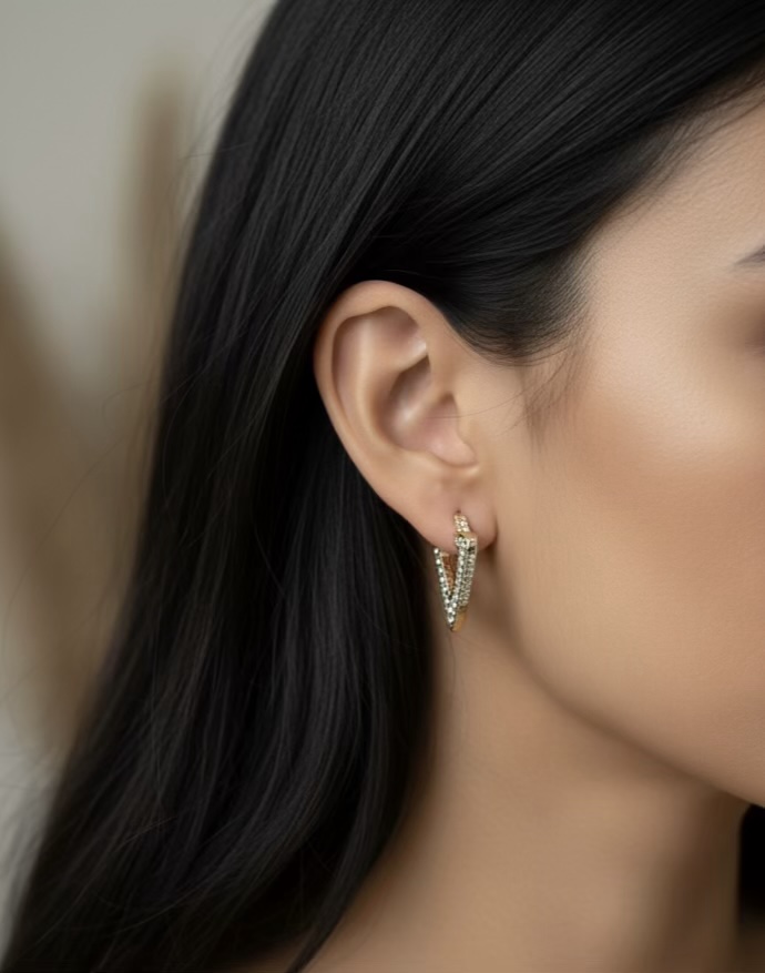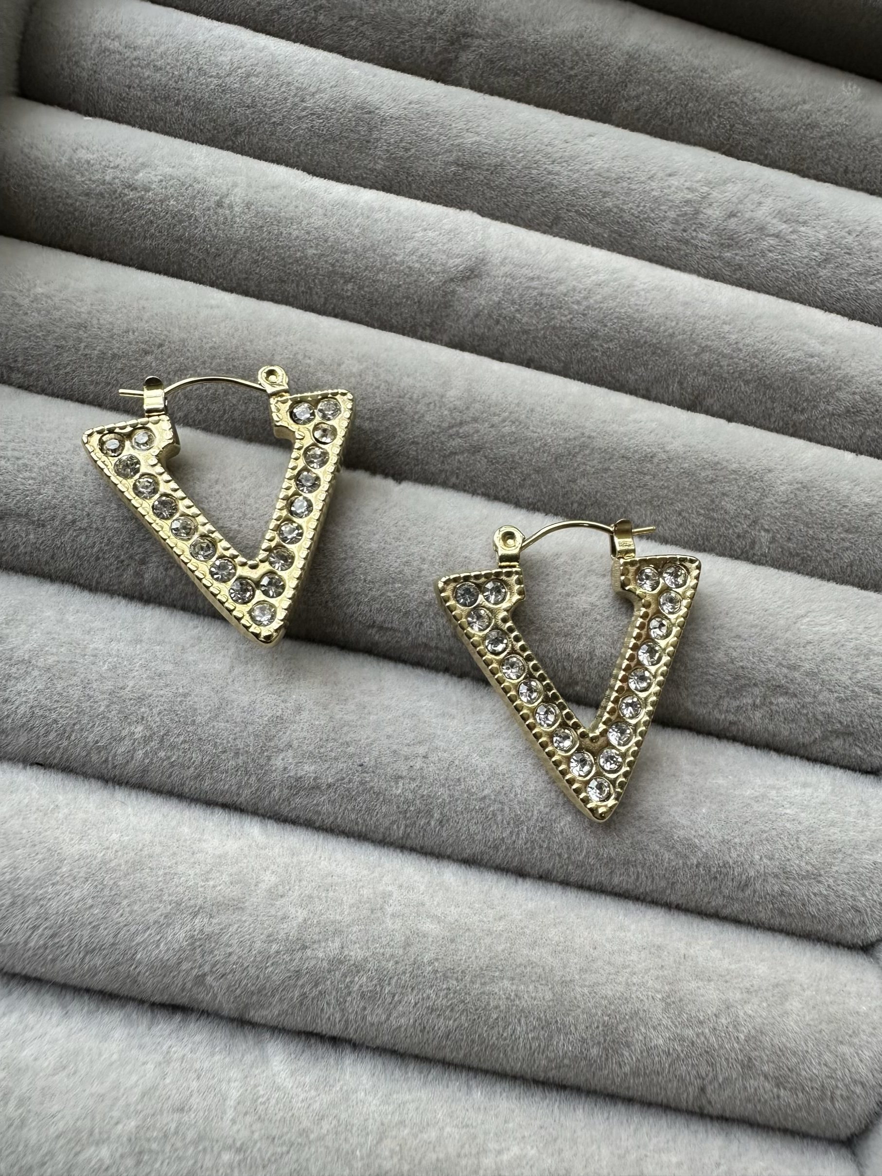V stoned hoops earrings