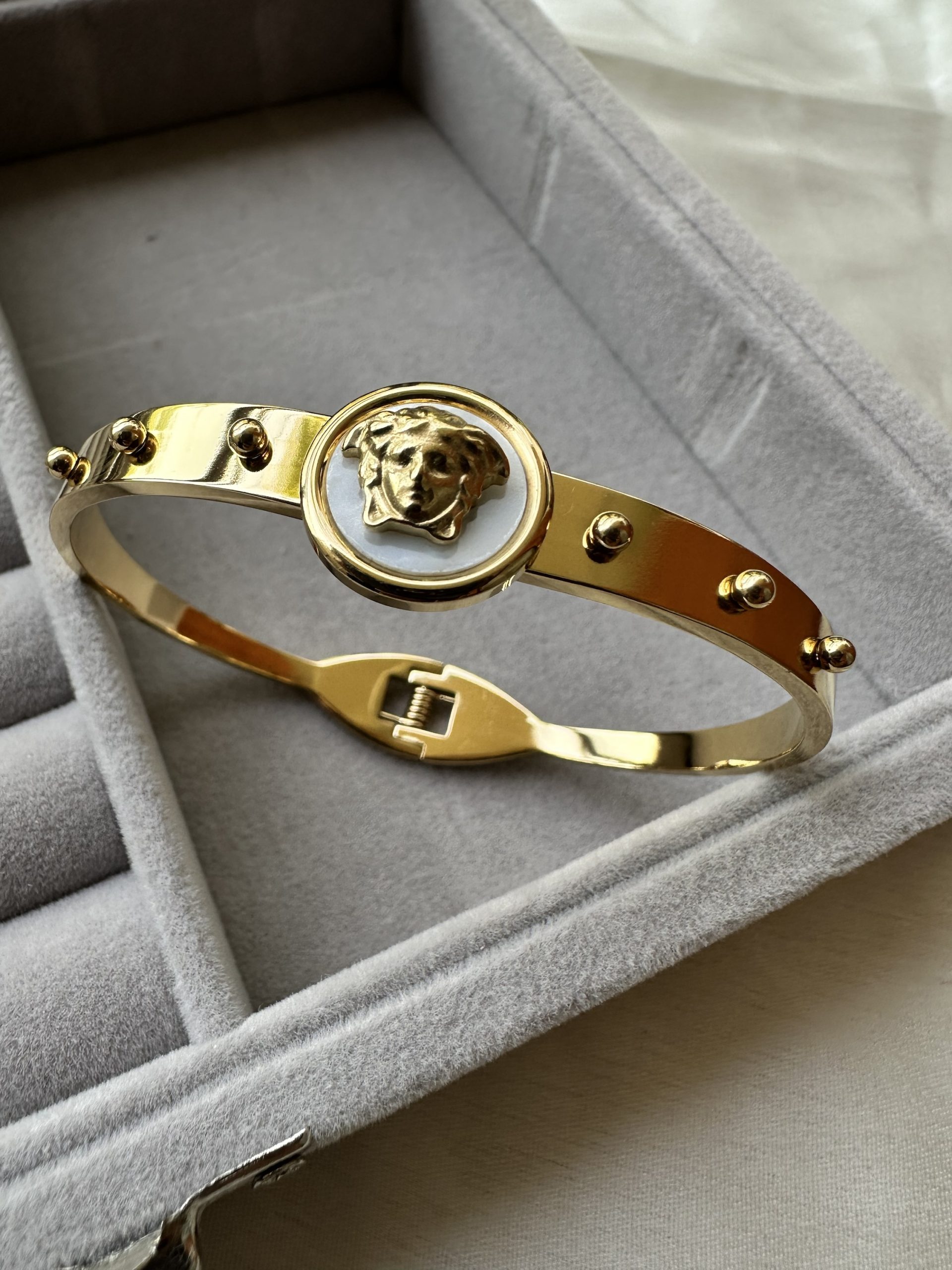 Material: Stainless steel, anti tarnish, water resistant, 18K golden plated